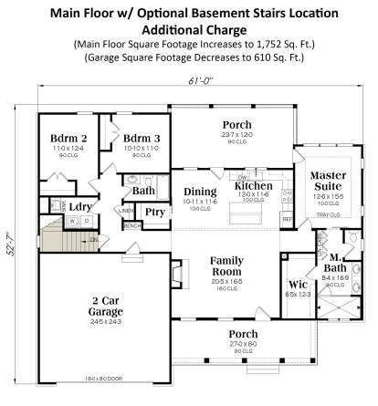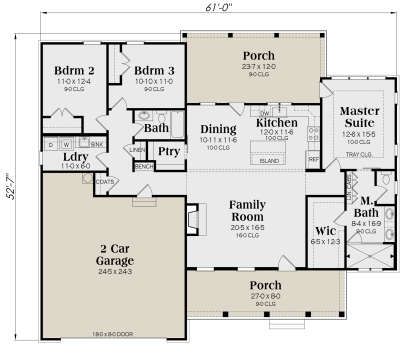 The design is typically constructed using conventional wood framing and can be built on several foundation types such as slab, crawlspace, or basement depending on regional building requirements and site conditions.