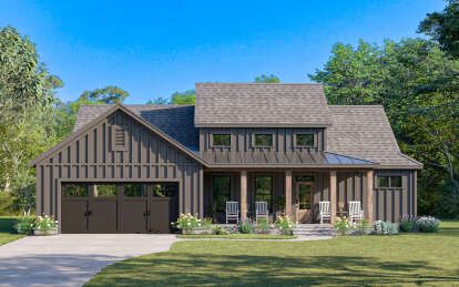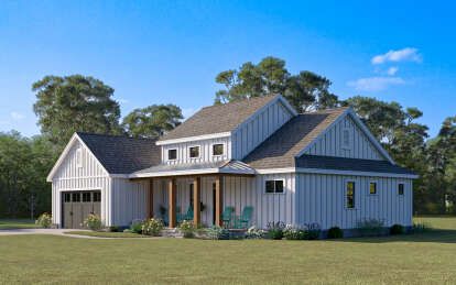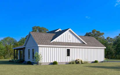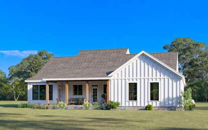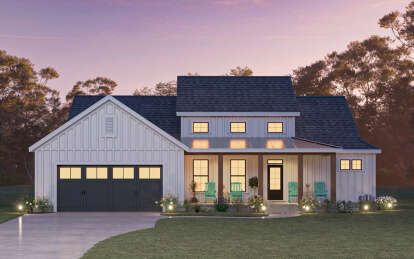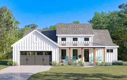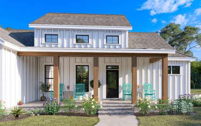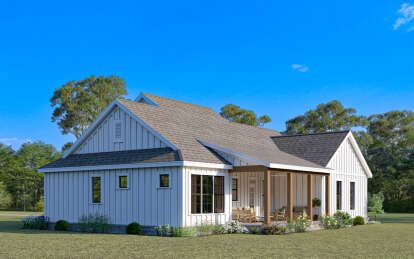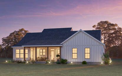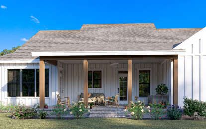 The exterior reflects the timeless character of modern farmhouse architecture. Clean rooflines, balanced window placement, and welcoming outdoor spaces give the home strong curb appeal while maintaining a warm residential feel. Farmhouse designs often combine rustic inspiration with contemporary simplicity, allowing the home to blend naturally into a variety of landscapes.A covered entry porch enhances the front elevation and creates a comfortable outdoor seating area where homeowners can relax or greet visitors. Large windows across the façade help brighten the interior while reinforcing the home’s balanced architectural appearance.