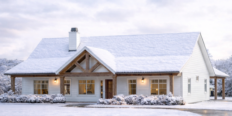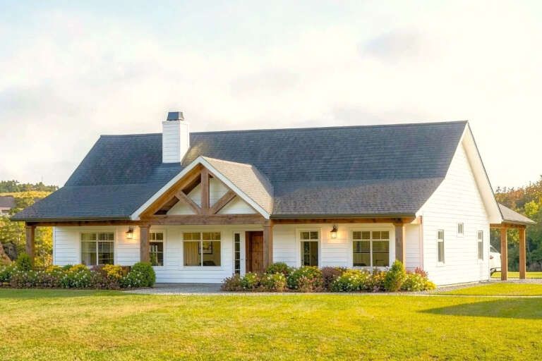 The exterior presents a clean and timeless farmhouse look with a well-balanced footprint measuring approximately 54 feet 4 inches wide and about 62 feet deep. This size provides a strong presence while remaining suitable for a variety of lot sizes. 1