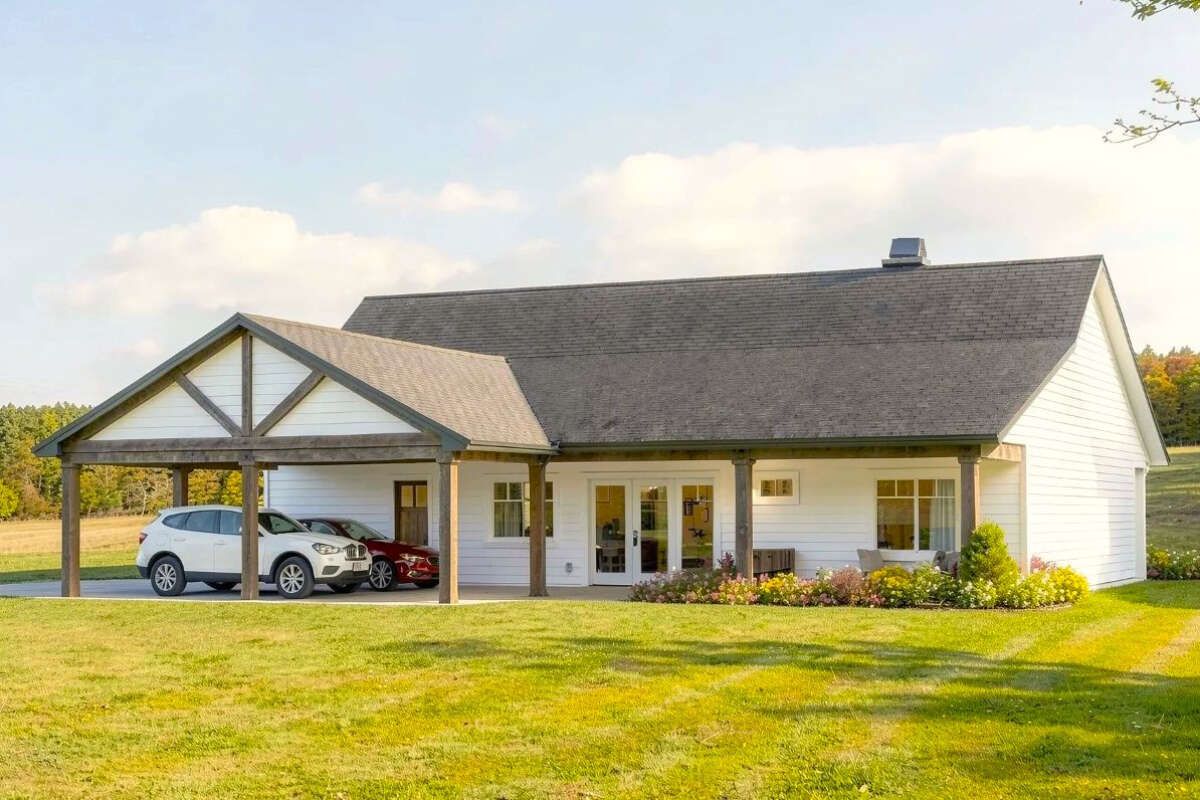 The attached two-car garage adds practicality and convenience, offering space for vehicles, tools, and storage. Its integration into the home allows easy access while maintaining a cohesive exterior design. 5
