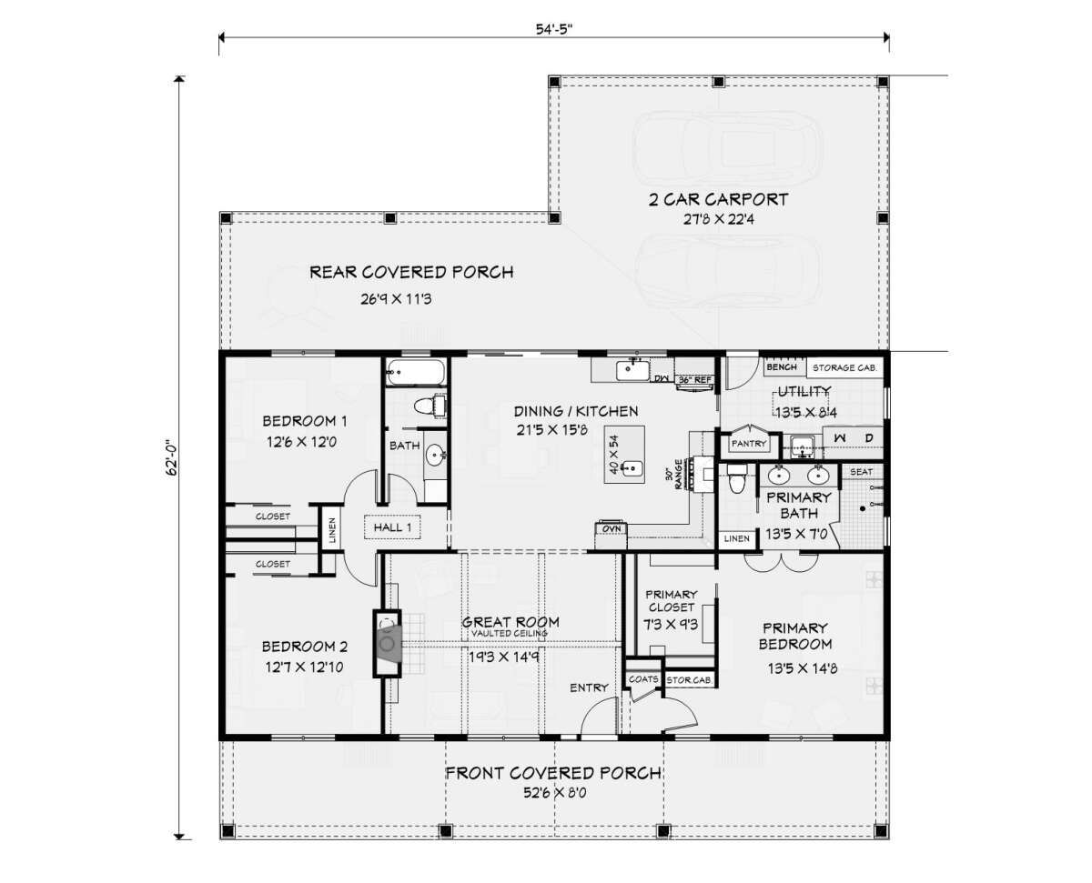 The home measures approximately 54’4″ in width and 62′ in depth, with a total heated area of 1,717 square feet. It is built as a one-story structure, emphasizing efficiency and comfort. 6The structure is typically constructed using conventional wood framing and can be adapted to different foundation types such as slab, crawlspace, or basement depending on site conditions and preferences.