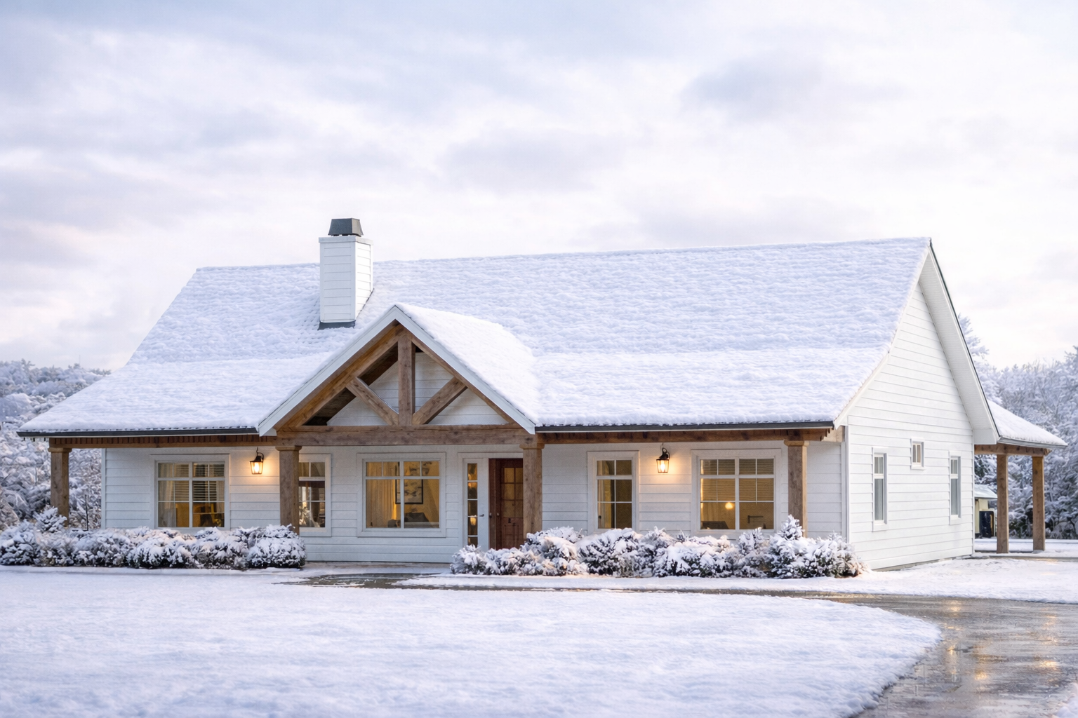 The exterior presents a clean and timeless farmhouse look with a well-balanced footprint measuring approximately 54 feet 4 inches wide and about 62 feet deep. This size provides a strong presence while remaining suitable for a variety of lot sizes. 1