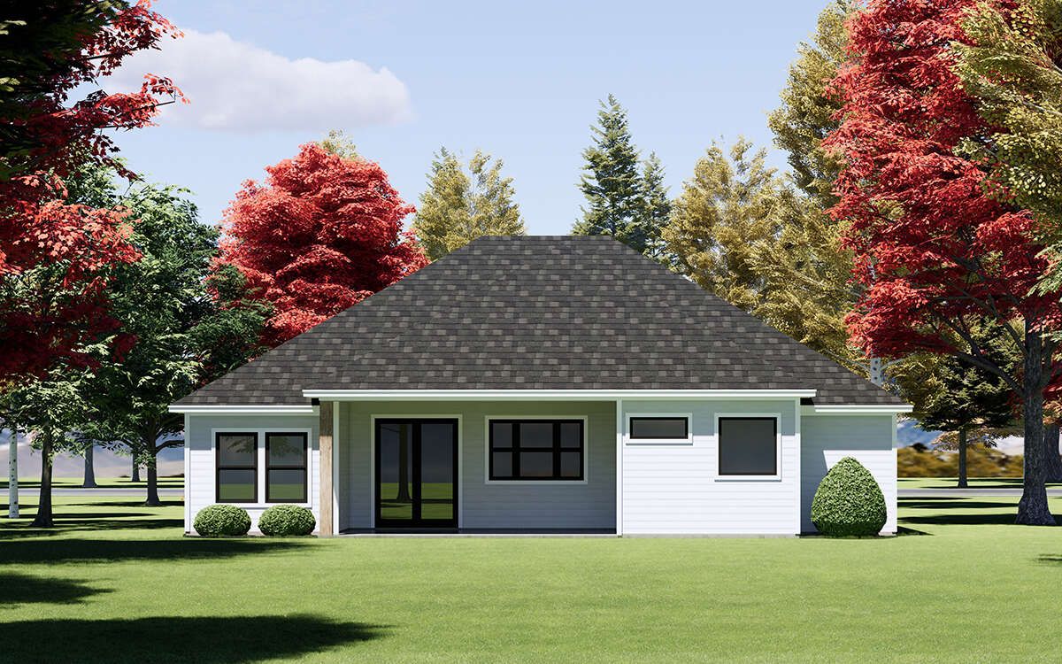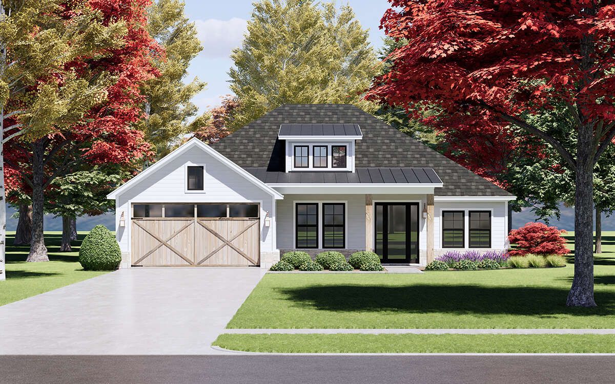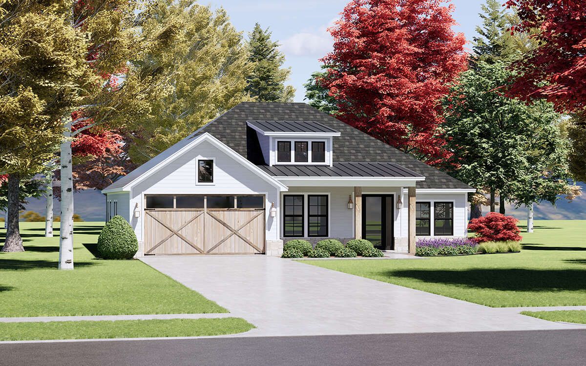 The exterior showcases a timeless farmhouse style with clean lines, a balanced structure, and a welcoming covered front porch. This design offers strong curb appeal while maintaining a warm and inviting look. ([houseplans.net]())