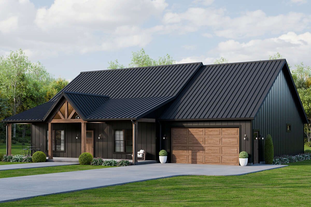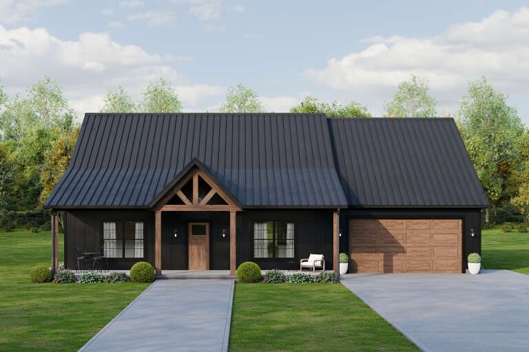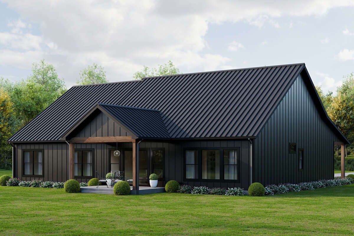 This modern farmhouse plan offers a perfect combination of style, comfort, and efficiency. With its open layout, private bedroom arrangement, and inviting outdoor features, it is an excellent choice for building a modern and functional family home.
