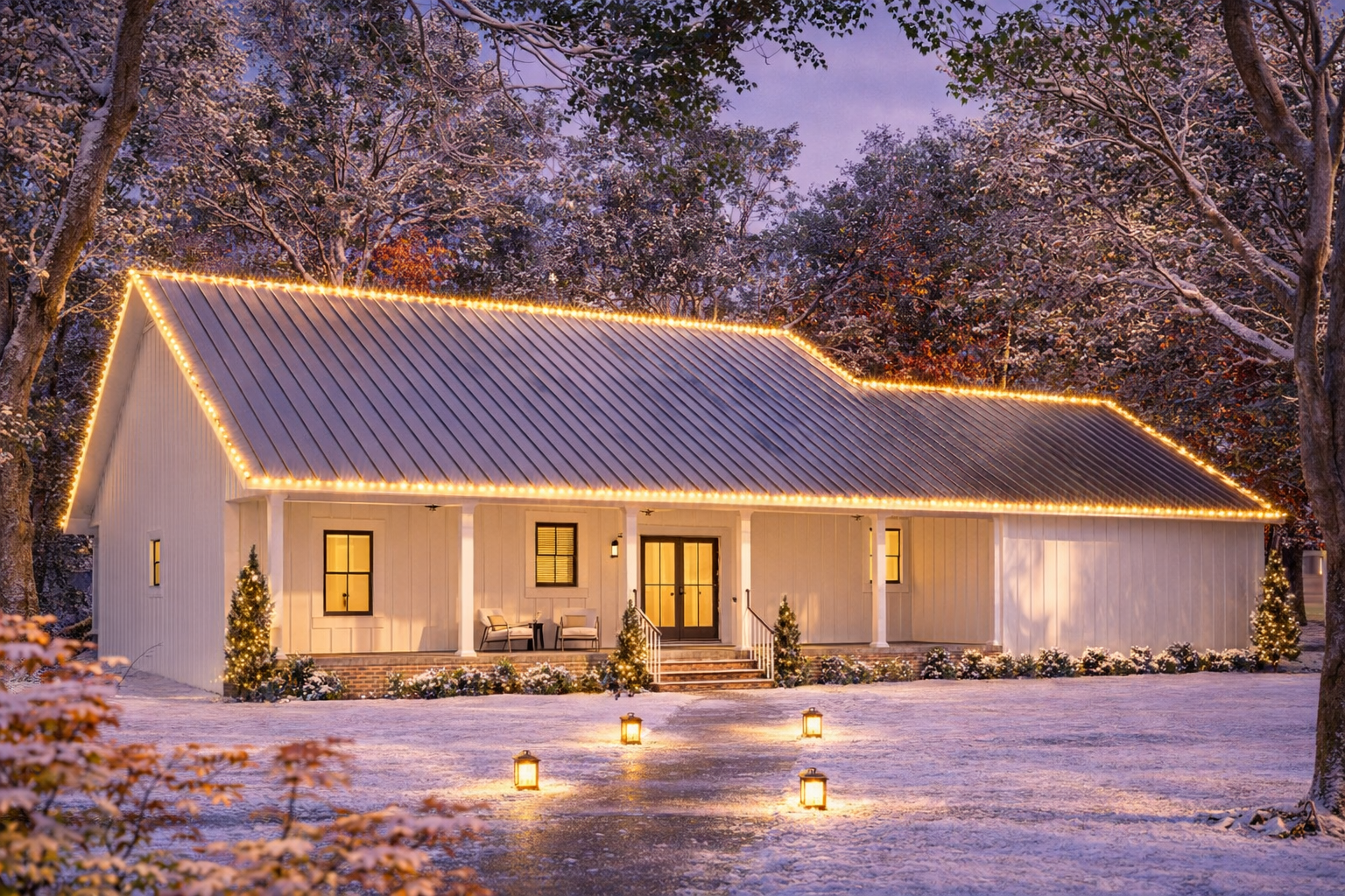 - Farmhouse curb appeal delivers timeless charm with modern warmth.