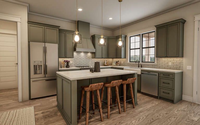 This modern farmhouse plan combines warmth, comfort, and smart layout design in a home that feels genuinely livable. It’s open where you want connection, private where you need rest, and sized to feel spacious without being overwhelming. With three bedrooms, a guest-friendly bathroom setup, and timeless farmhouse charm, it’s a home that fits everyday life beautifully—and keeps fitting as your needs evolve.