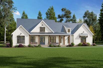 The exterior features classic modern farmhouse character with clean rooflines, board-and-batten siding, and generous windows that enhance curb appeal and allow for abundant natural light. A welcoming covered front porch adds outdoor living space and creates a strong connection to the surrounding landscape. The balanced proportions and contemporary farmhouse detailing help this home fit beautifully on suburban, rural, or countryside lots. ([houseplans.net](https://www.houseplans.net/floorplans/00900448/modern-farmhouse-plan-2256-square-feet-3-4-bedrooms-2.5-bathrooms))