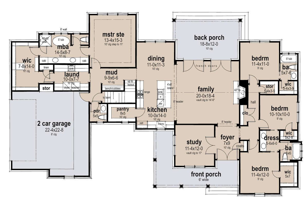 A home with four bedrooms needs good organization, and this plan supports that with practical laundry and storage spaces. These everyday features help prevent clutter from spreading into the main living areas, which keeps the home feeling calm and welcoming.