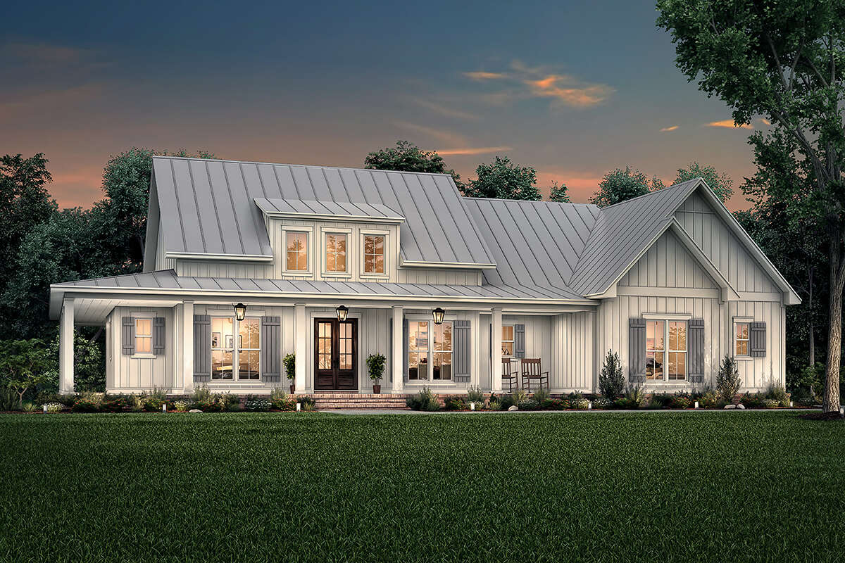 - Modern farmhouse curb appeal with timeless warmth and balanced design.