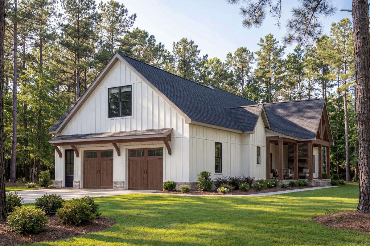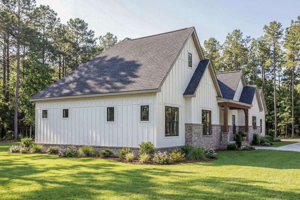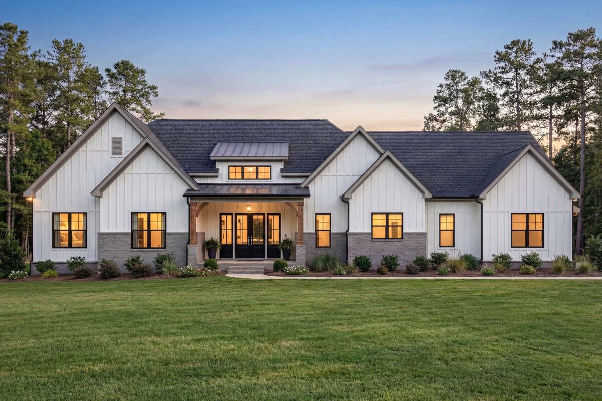 this modern farmhouse plan is designed to deliver comfort, style, and adaptability for modern family living. 0