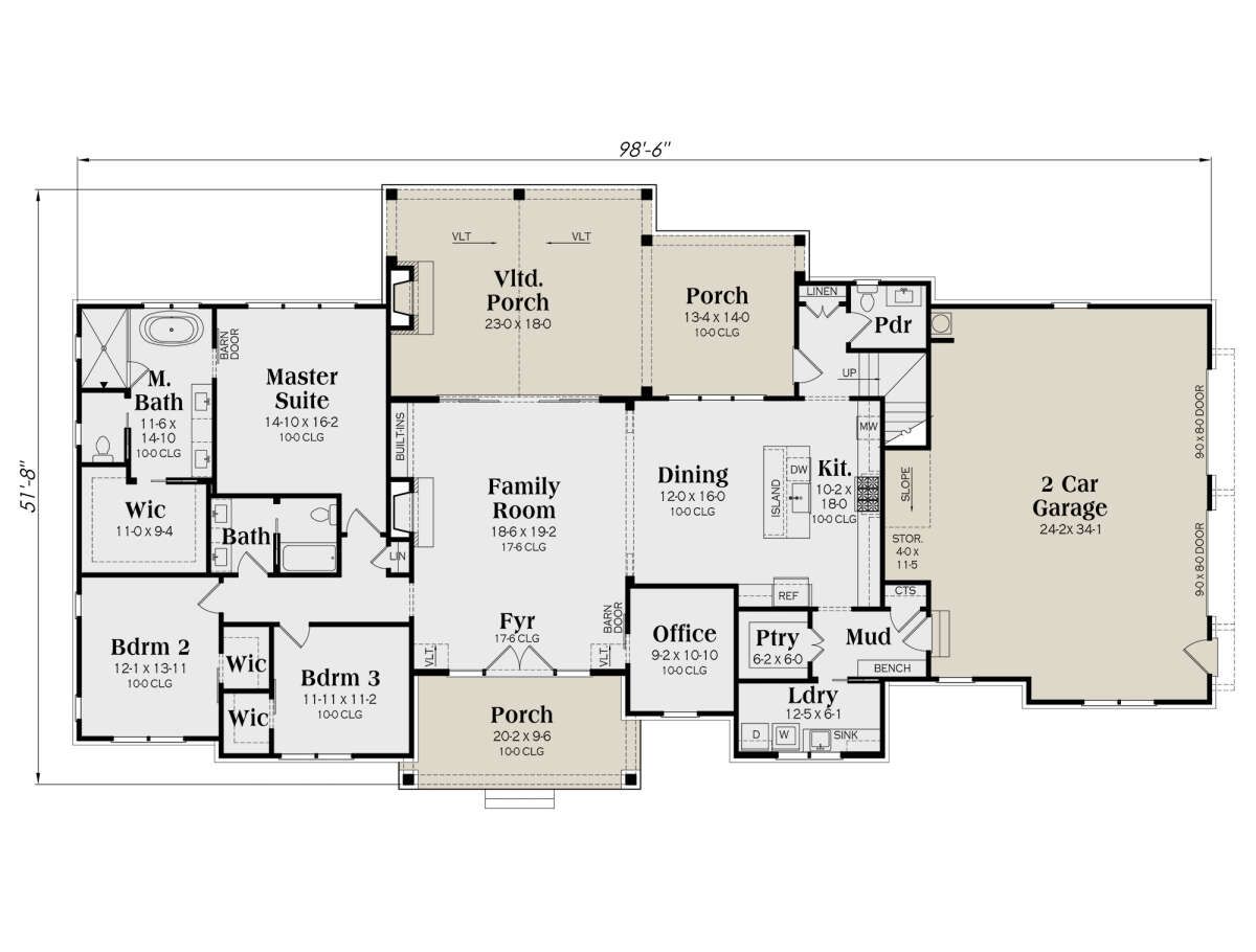 With overall dimensions of approximately 98 feet 6 inches wide and 51 feet 8 inches deep, the home offers an expansive layout while maintaining a balanced structure. 1