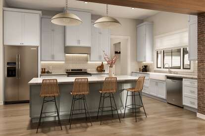 This beautifully designed modern farmhouse plan offers approximately 2,400 square feet of thoughtfully laid-out living space with four bedrooms, three full bathrooms.