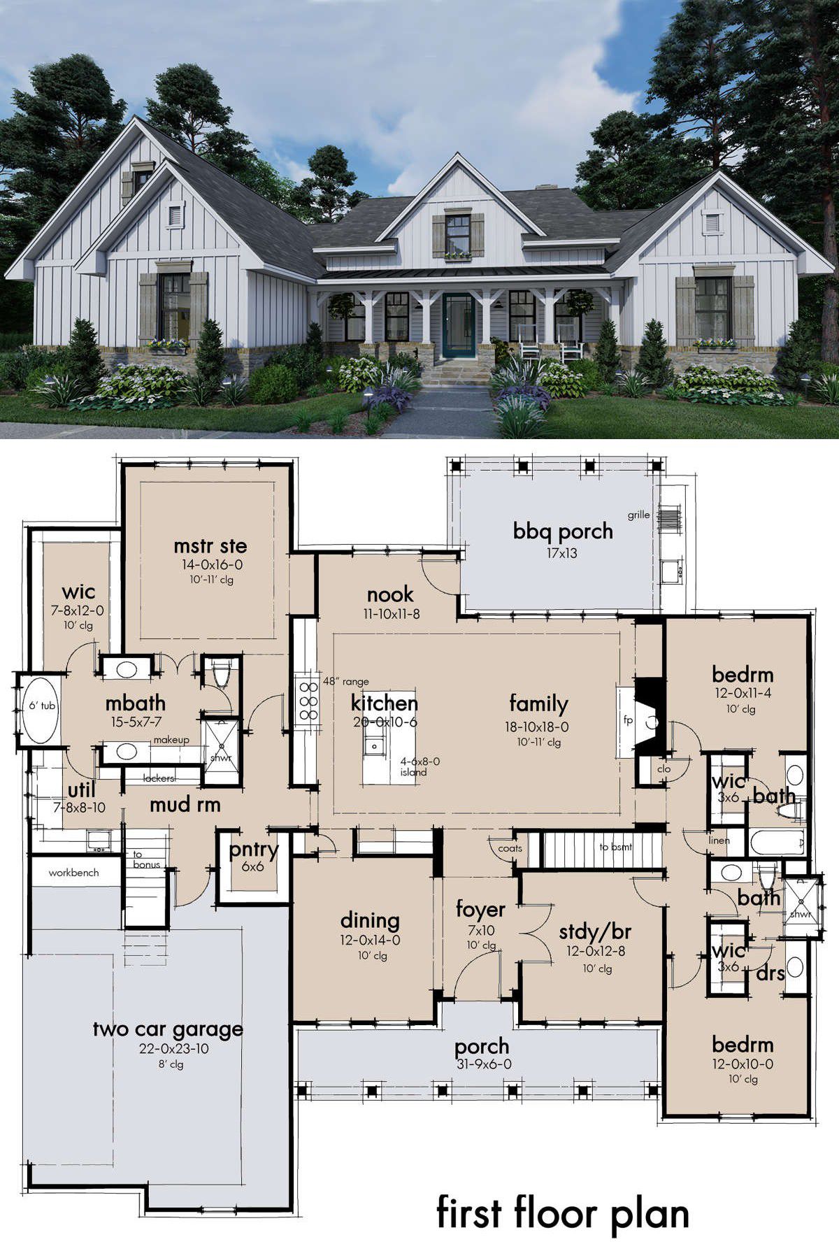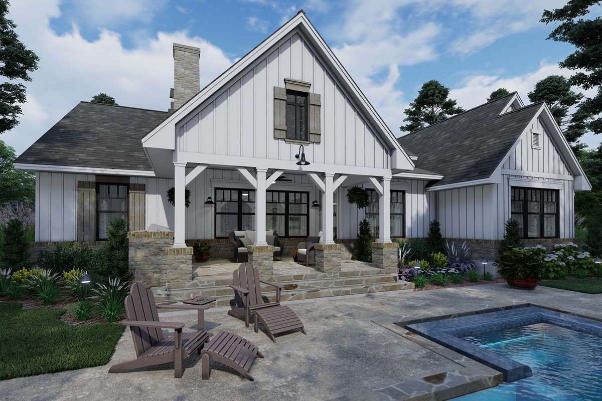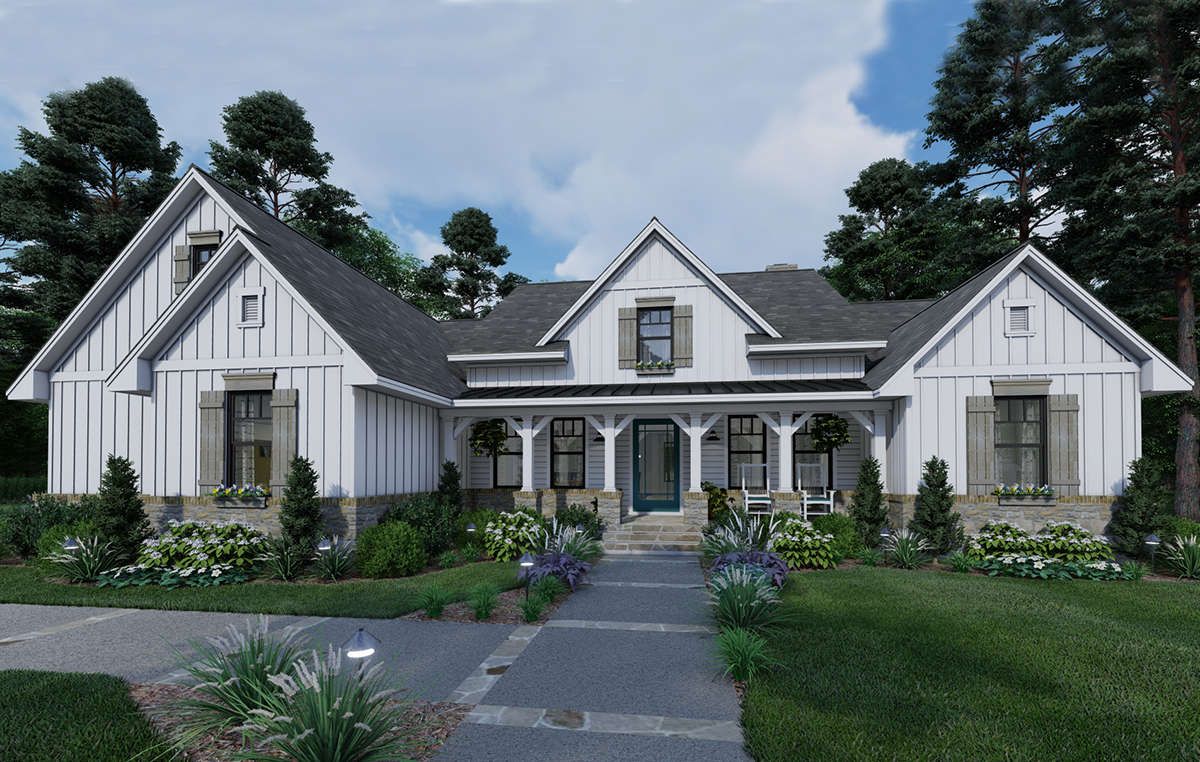this modern farmhouse plan combines spacious living with refined farmhouse details, making it perfect for families seeking both comfort and style.