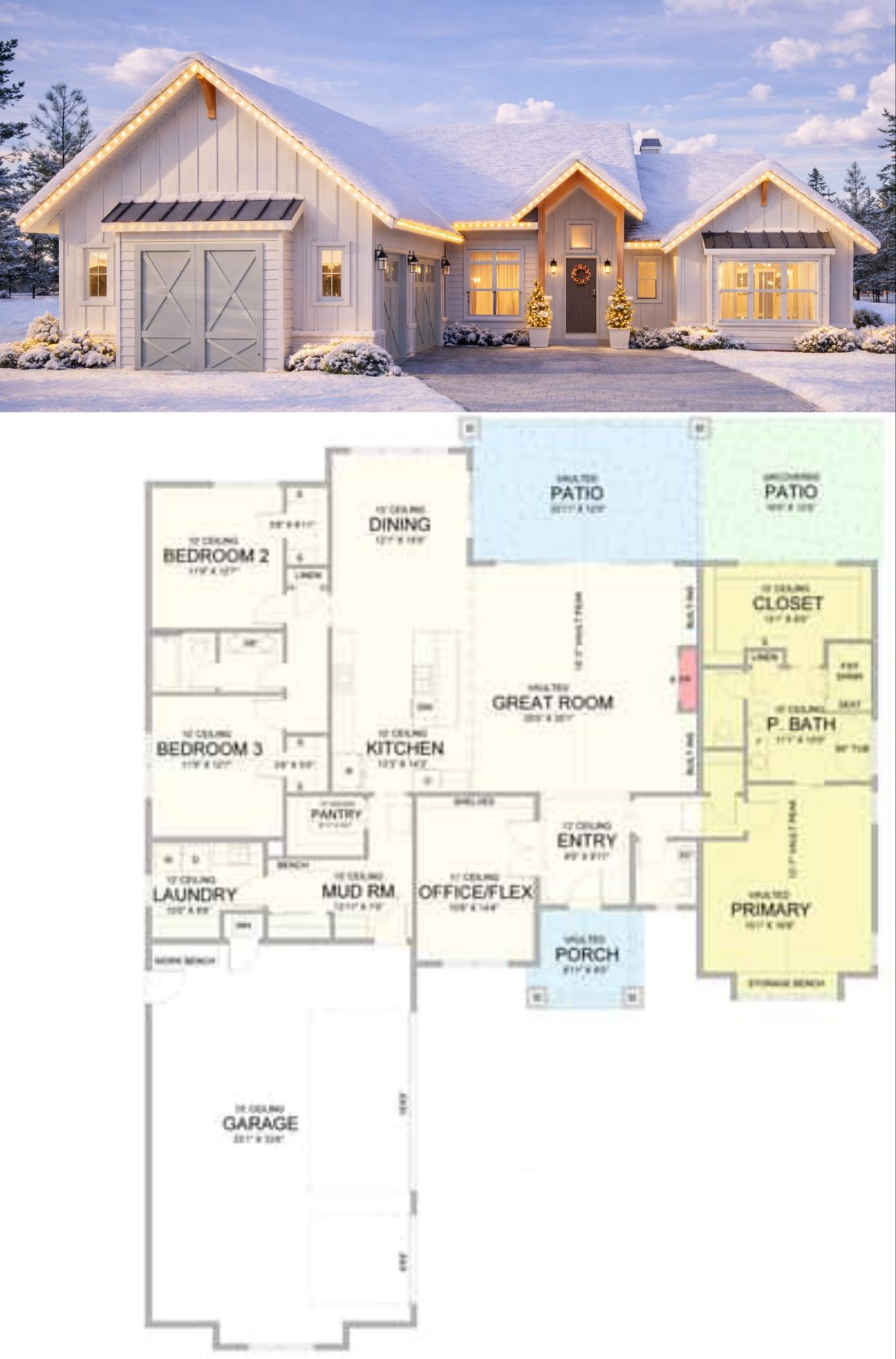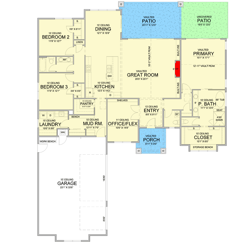 • Vaulted great room with fireplace: Enhances openness and architectural character. 14