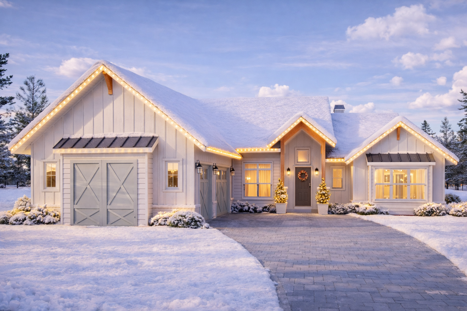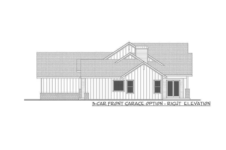 A side-load three-car garage integrates seamlessly into the design, offering ample parking, storage, and workshop potential without overwhelming the front elevation. This configuration also enhances the home’s visual symmetry and functionality. 2