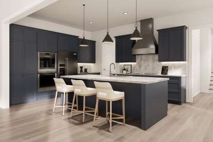 The kitchen includes a generous island and ample counter space, supporting meal preparation and serving with ease. Its adjacency to the dining and living areas makes it a central hub for family interaction and entertaining.5