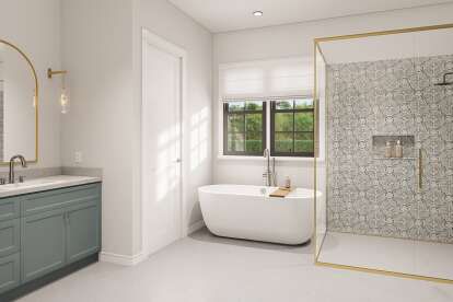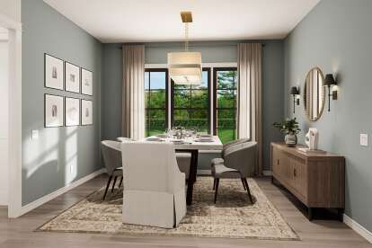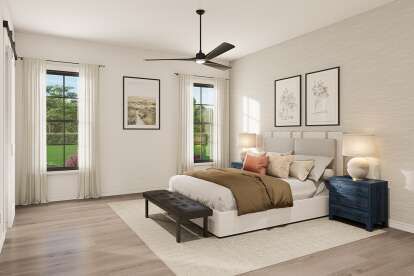 This plan includes four to five bedrooms, allowing flexibility in use. The primary bedroom is positioned for privacy and includes easy access to one of the full bathrooms.6