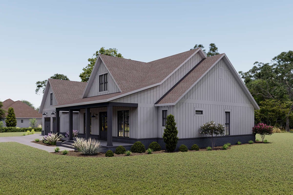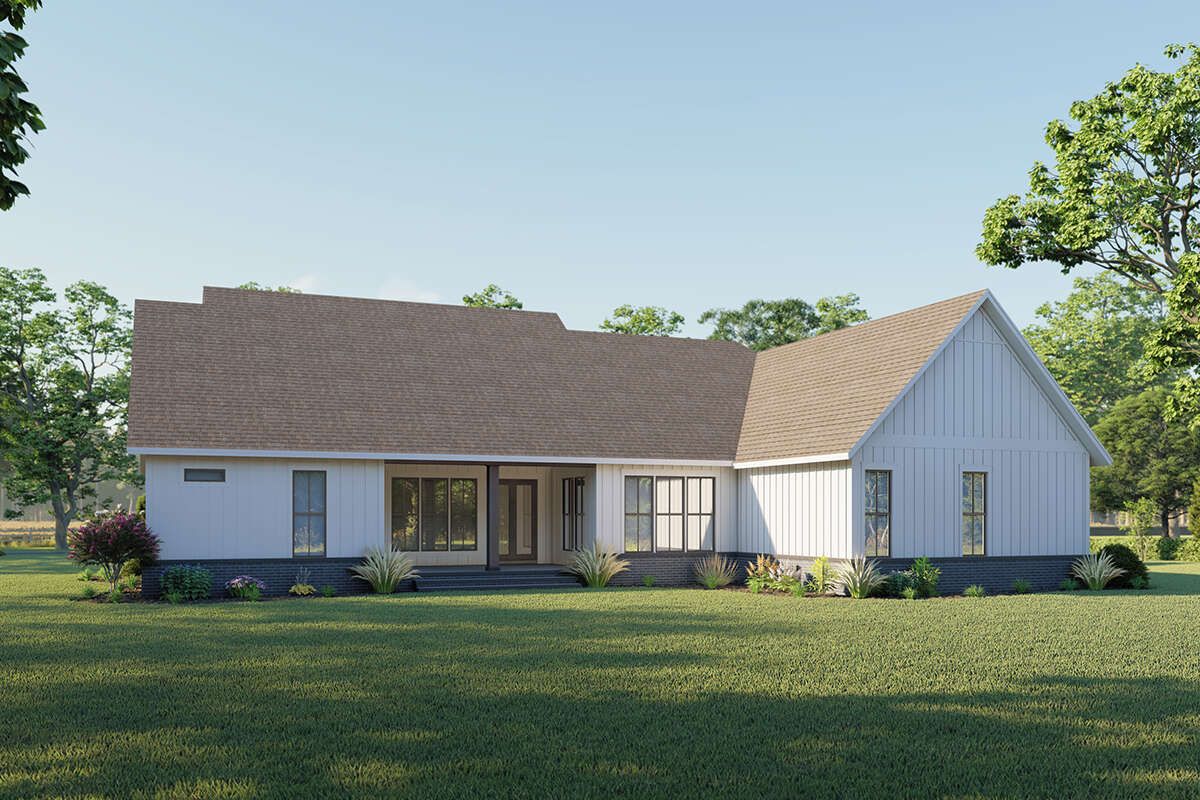 this modern farmhouse plan combines modern open living with classic farmhouse charm, making it perfect for families who want both comfort and style. 0
