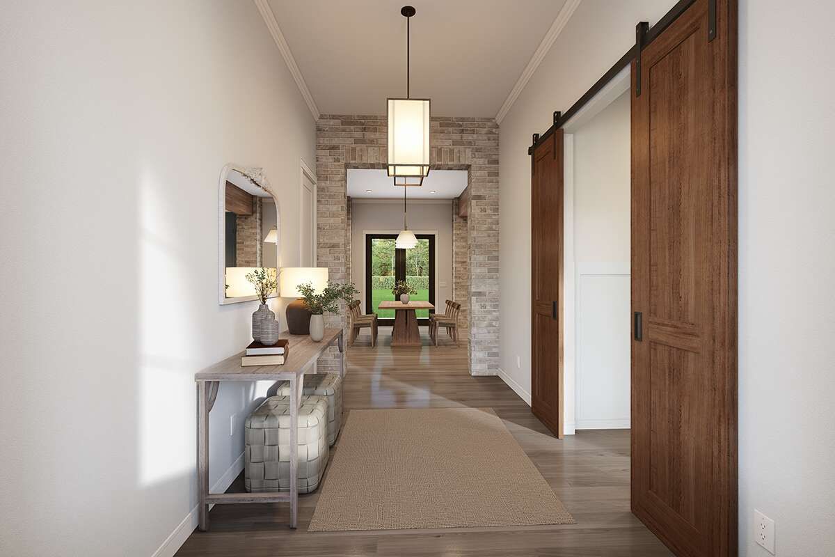 Modern farmhouse homes almost always shine when indoor-outdoor living is part of the lifestyle, and this plan supports that beautifully. Outdoor space gives you more room to host gatherings, grill on weekends, or simply step outside to enjoy fresh air and quiet moments.