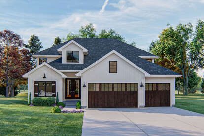 This modern farmhouse plan includes approximately 3,394 square feet of heated living area and is typically designed as a two-story residence. The design may incorporate a multi-car garage and can be built using conventional wood framing methods. Foundation options such as slab, crawlspace, or basement may be available depending on site conditions and local building requirements. 1