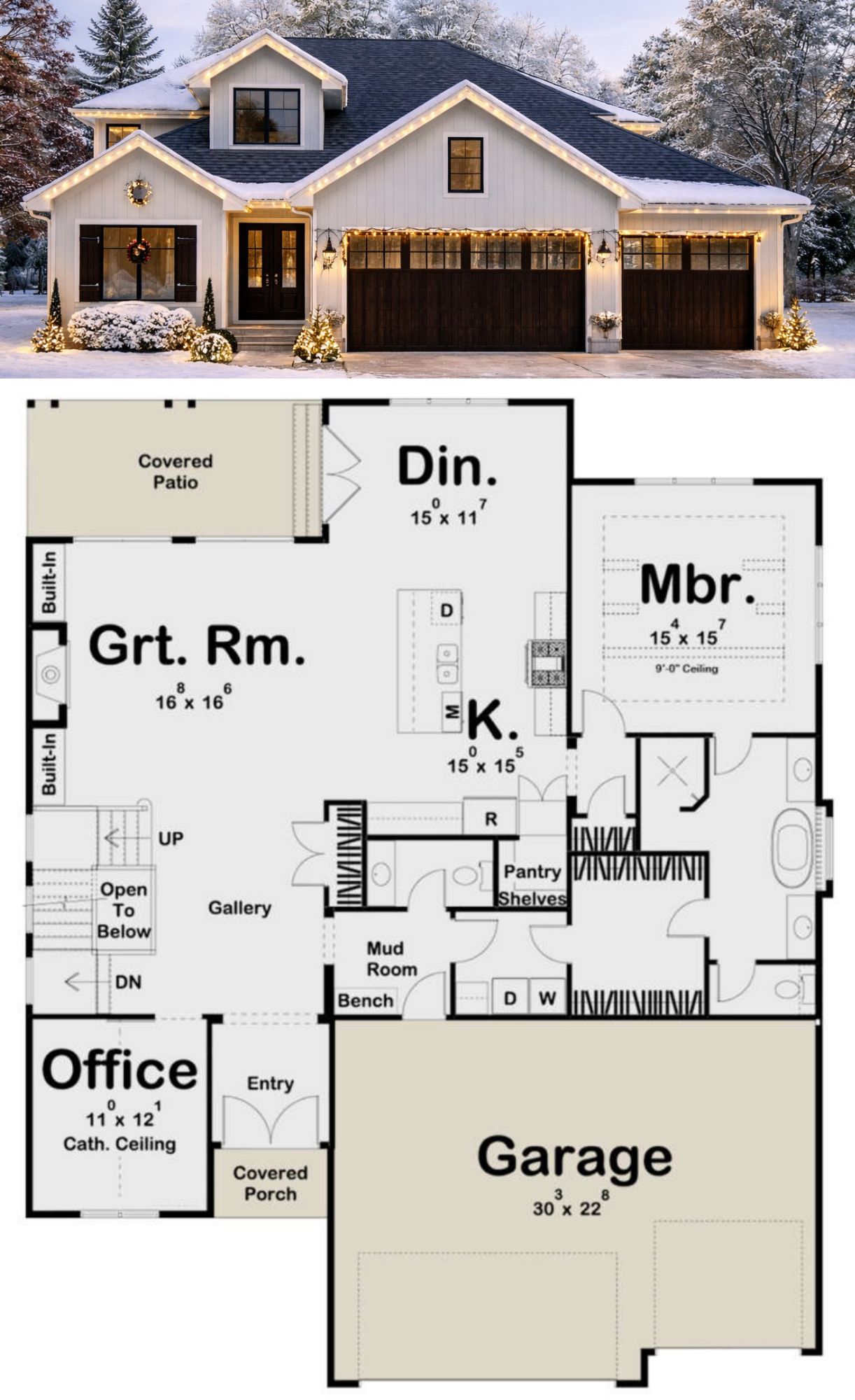 This impressive modern farmhouse design offers approximately 3,394 square feet of heated living space with five bedrooms, three full bathrooms, and one half bathroom. The layout combines classic farmhouse architecture with spacious modern interiors, creating a home that is well suited for large families or households that enjoy entertaining guests. The generous floor plan provides multiple living areas, comfortable bedrooms, and practical circulation that supports both everyday living and special gatherings. 0