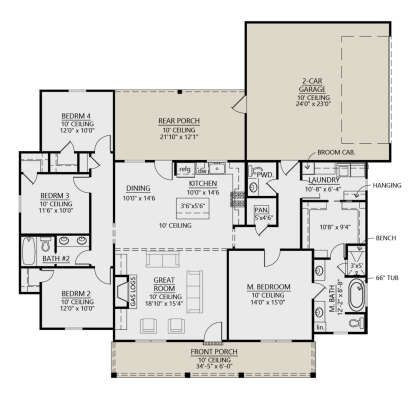 Modern Farmhouse Plan – Spacious 3-Bedroom, 2-Bathroom One-Story Home with 2-Car Garage (~1,941 Sq Ft)