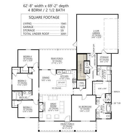 Craftsman House Plan – Generous 4-Bedroom, 3.5-Bathroom Home with Wrap-Around Porch & Thoughtful Layout (~2,961 Sq Ft)