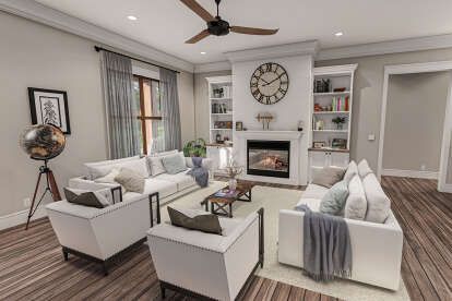 Three secondary bedrooms provide excellent flexibility for family members, guests, or alternative uses such as a home office or hobby room. 19 Their placement allows for easy access to shared spaces while maintaining a sense of separation from the primary suite. 20 A shared full bathroom serves these rooms efficiently, supporting smooth daily routines. 21