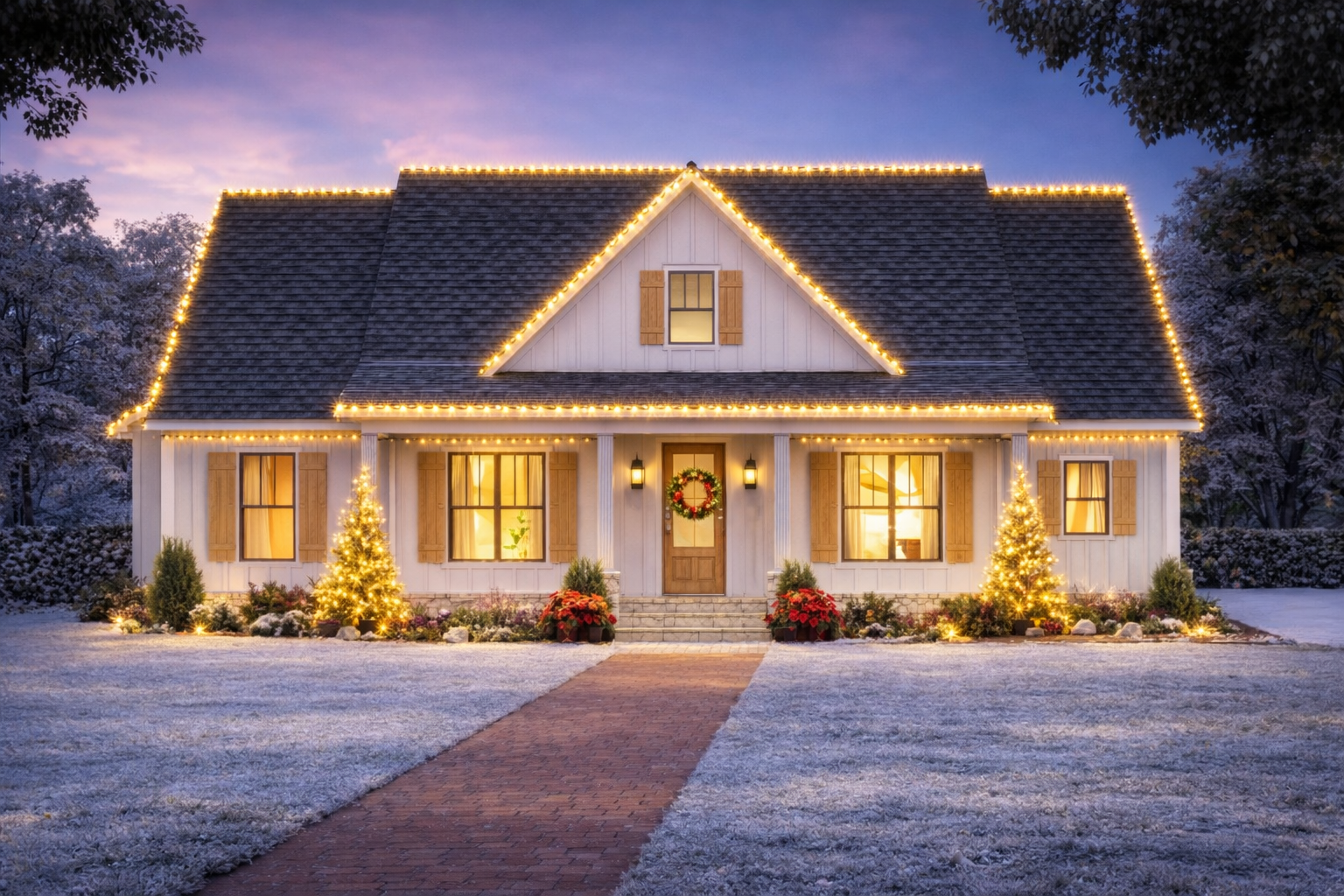 The exterior presents classic modern farmhouse styling with clean lines, balanced proportions, and welcoming details that immediately feel like home. 1 A simple roofline, crisp siding, and carefully placed windows create a look that’s both charming and low-maintenance. 2 The front elevation feels friendly and approachable, making a strong first impression without being overly ornate. 3
