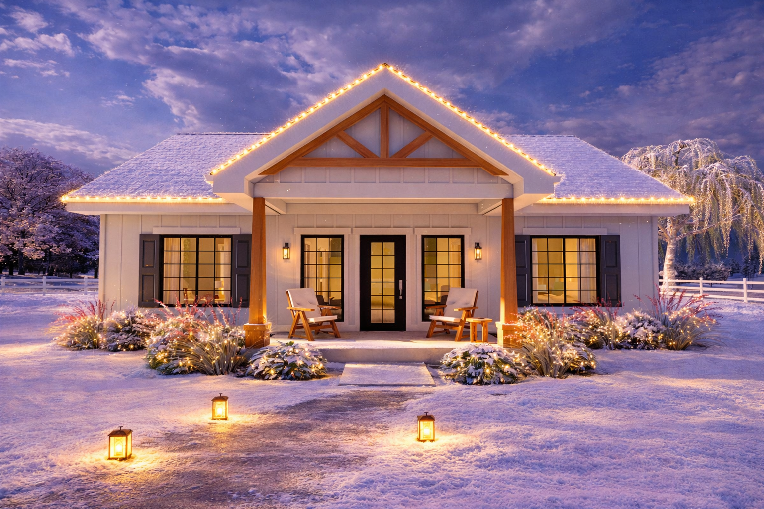 • Modern farmhouse charm in a compact, easy-care footprint.
