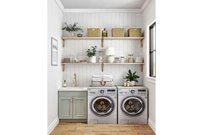 A dedicated laundry area keeps household chores organized and separate from main living spaces. Storage is thoughtfully integrated throughout the home, helping maintain a clean, uncluttered interior that supports everyday routines.