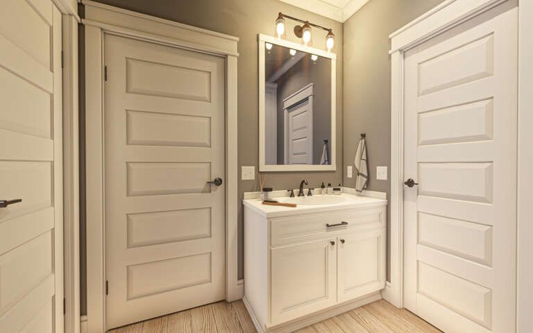 This bathroom arrangement enhances comfort and functionality, ensuring that morning routines and gatherings both feel natural and unhurried.