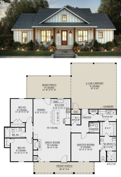 This modern farmhouse plan combines smart space planning with classic style, creating a home that feels both comfortable and intentional. Its open interior fosters connection, while private bedroom zones offer rest and retreat. With practical everyday features like a well-situated laundry area and flexible bedroom use, this design supports real lifestyle needs without compromising on charm or lasting appeal