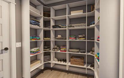 A dedicated laundry area helps streamline household chores and keeps necessary tasks contained and organized. Integrated storage throughout the home supports tidy living and keeps everyday items within reach without cluttering living zones.
