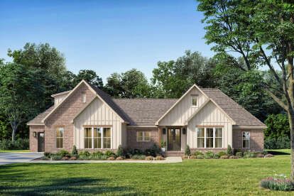 This beautifully proportioned modern farmhouse plan offers about 2,557 sq ft of well-designed one-story living space. Featuring 4 bedrooms, 2.5 bathrooms, and an attached 3-car garage, it balances everyday comfort with striking architectural charm. With a thoughtful layout, generous outdoor connections, and spaces that anticipate real family needs, this home delivers both style and function for modern life. 0