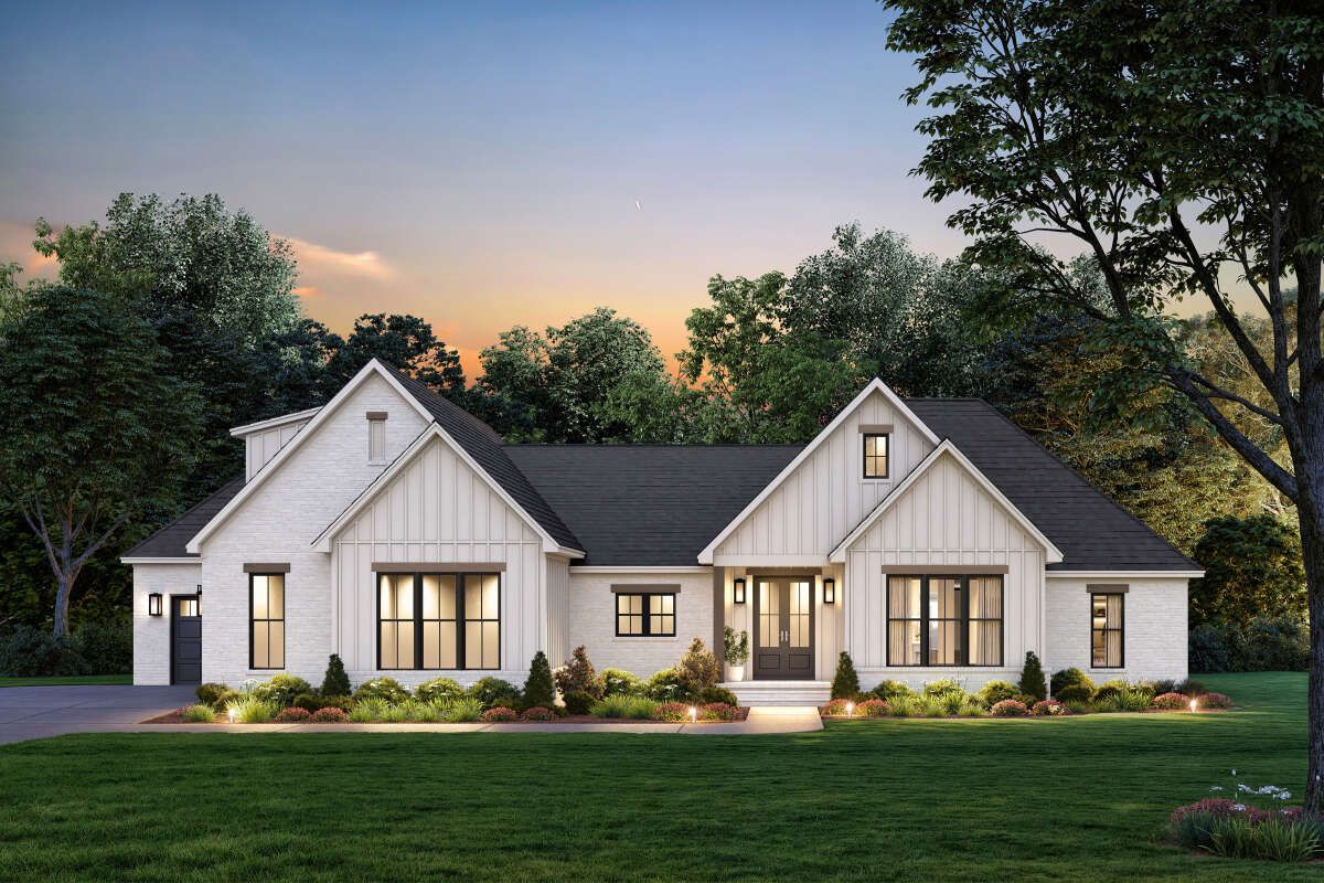 Modern Farmhouse Plan – Airy 4-Bedroom, 2.5-Bathroom Ranch with 3-Car Garage (~2,557 Sq Ft)