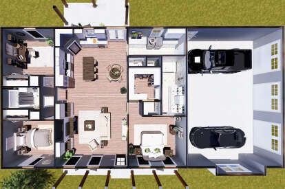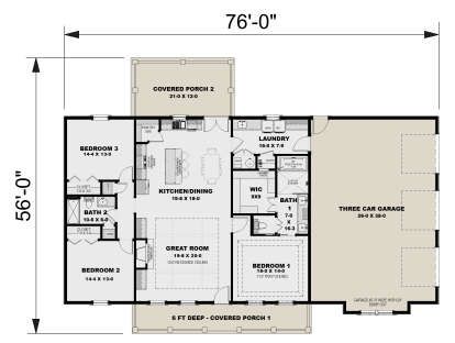 This thoughtfully arranged modern farmhouse plan delivers about 1,900 sq ft of comfortable and stylish living space. With 3 bedrooms and 2 full bathrooms, this single-story design blends timeless farmhouse elements with modern openness, making it ideal for everyday life, entertaining, and easy indoor-outdoor flow. 0
