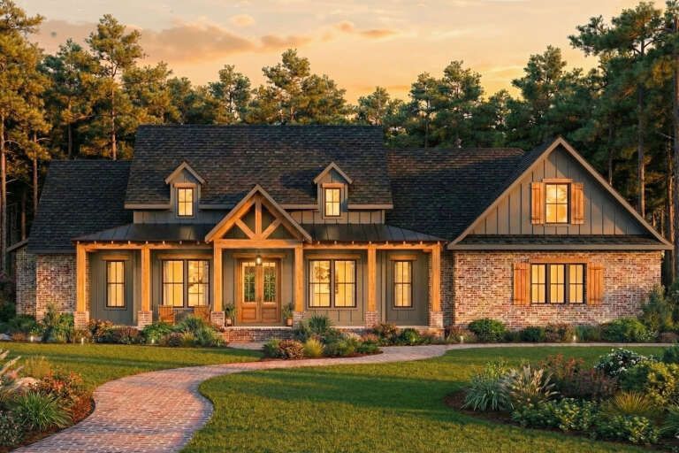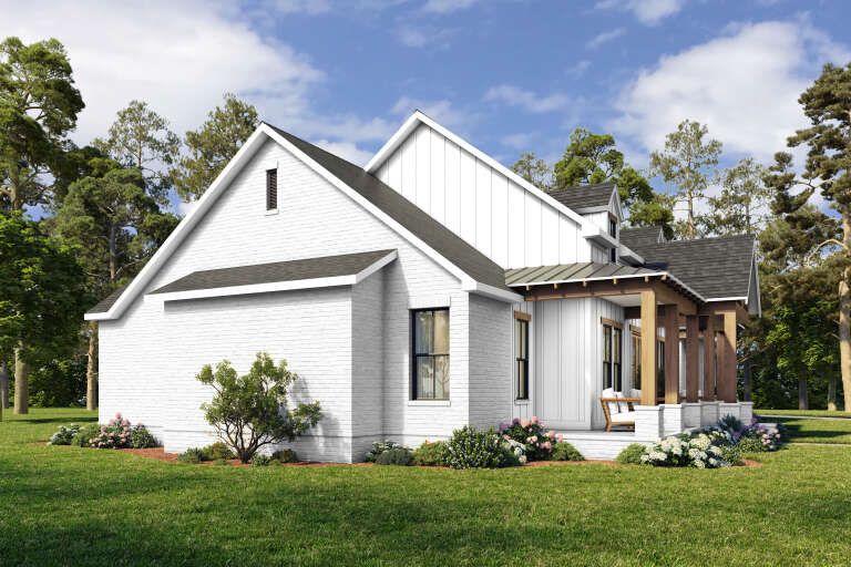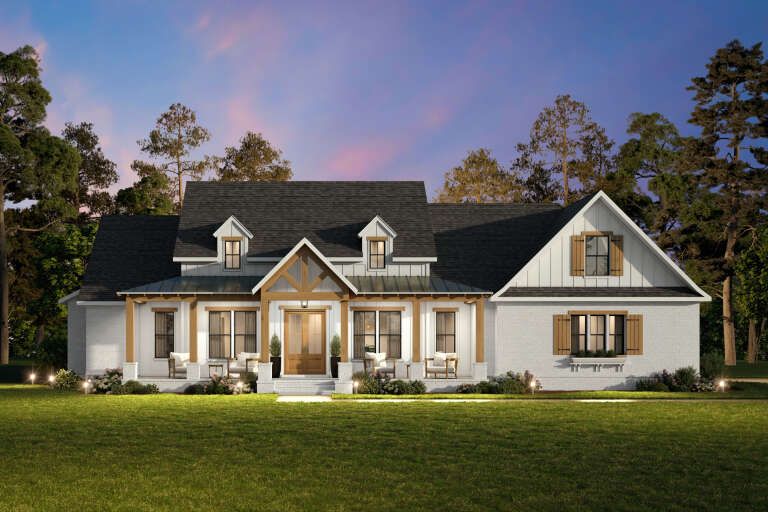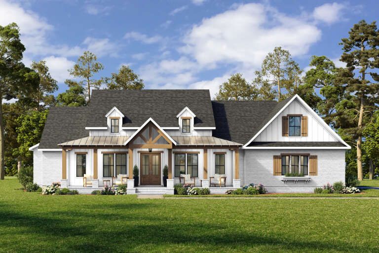 This modern farmhouse plan delivers thoughtful spaces that support both everyday living and occasional entertaining. With its open design, split bedroom layout, and porch spaces that connect you to the outdoors, it offers a balanced home that feels both generous and efficient. Whether you’re raising a family, hosting guests, or planning for growing needs, this plan gives flexibility, comfort, and timeless farmhouse appeal in a single, well-designed layout.