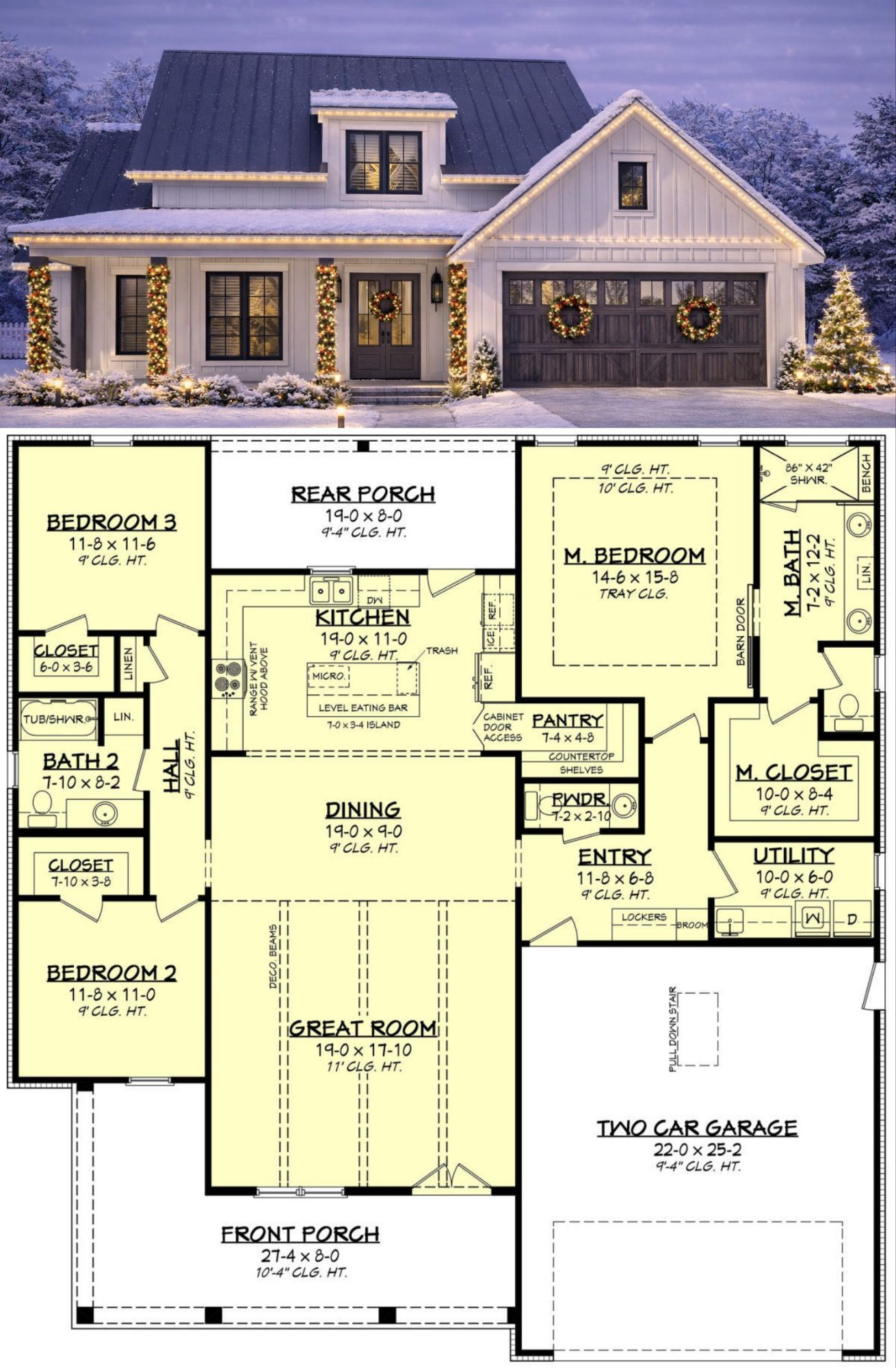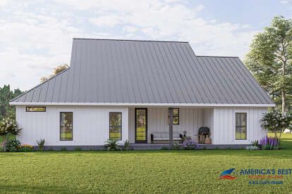 This modern farmhouse plan embraces open, light-filled spaces, practical everyday flow, and exterior porches that enhance indoor-outdoor living. Its balanced layout supports both family routines and entertaining, while thoughtful details like vaulted ceilings and private bedroom wings elevate comfort and functionality. Whether you’re settling in for daily life or hosting gatherings, this design delivers prime farmhouse living with contemporary ease.