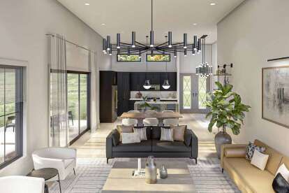 The kitchen is designed for both everyday use and social interaction. 10 Ample counter space and cabinetry help keep things organized and efficient, while sightlines to the dining and living areas allow you to stay connected during meal prep. 11 Sliding doors or large windows near the dining space strengthen the indoor-outdoor connection and make outdoor dining or entertaining effortless on pleasant days. 12