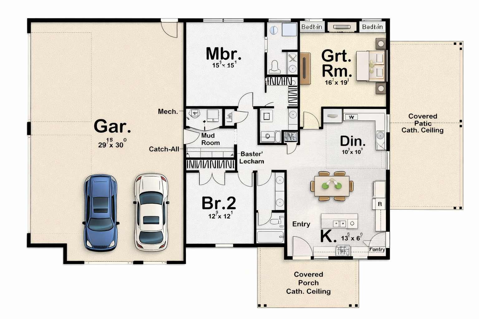 This home design embodies the best of modern farmhouse living: an open, light-filled interior that promotes connection, flexible bedroom spaces that adapt to your lifestyle, and outdoor porch areas that give everyday living a relaxed, welcoming feel. With thoughtful proportions and practical flow, it’s ideal for those seeking stylish, comfortable living in a modest footprint.