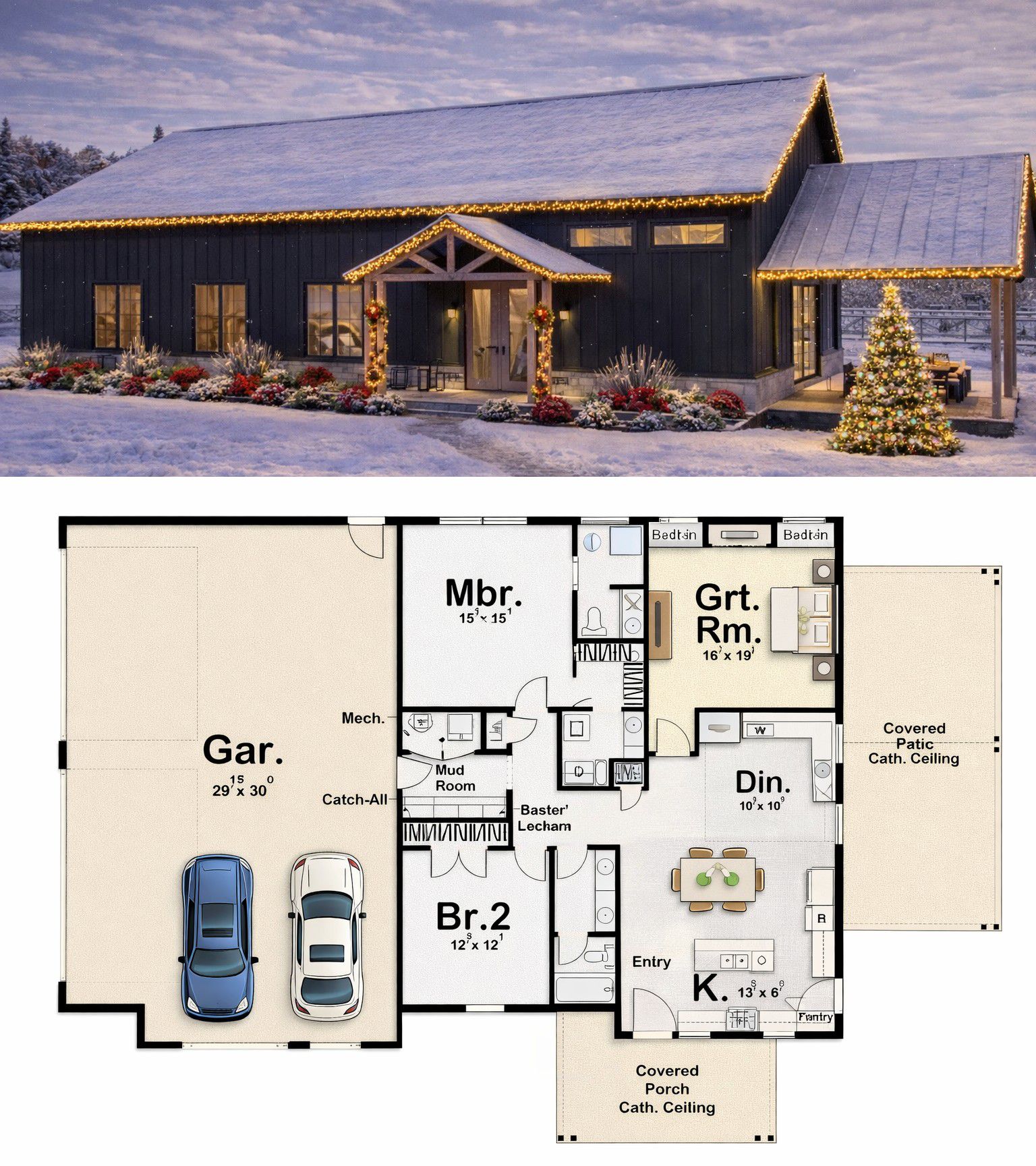 This modern farmhouse plan offers about 1,461 sq ft of thoughtfully designed living space. With a flexible layout that can accommodate 2–3 bedrooms and 2 full bathrooms, this single-story home blends simple farmhouse charm with contemporary living. Its efficient use of space, indoor-outdoor connection, and functional flow make it ideal for small families, downsizers, or anyone seeking comfortable, stylish living without excess. 0