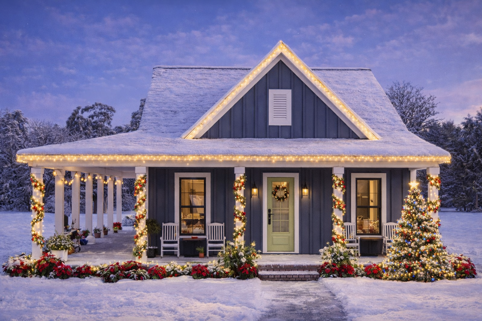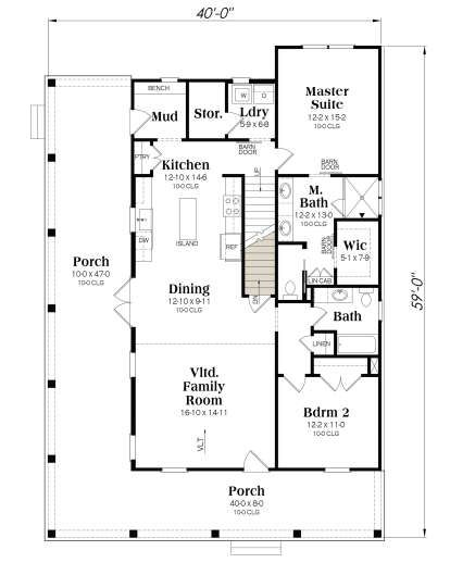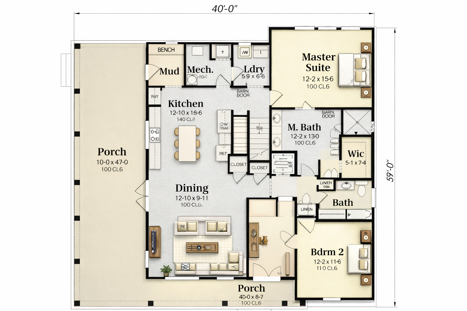 The exterior presents classic modern farmhouse appeal with clean lines, balanced proportions, and inviting covered porch space at the front. 1 With overall dimensions of approximately 40′ wide × 59′ deep, this home feels grounded and welcoming while maintaining a modest footprint that works well on many lot types. 2 A simple yet striking façade invites you in with its thoughtful details and warm presence. 3