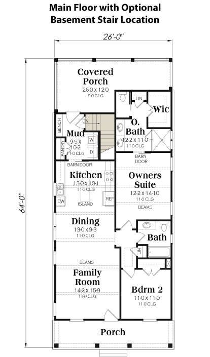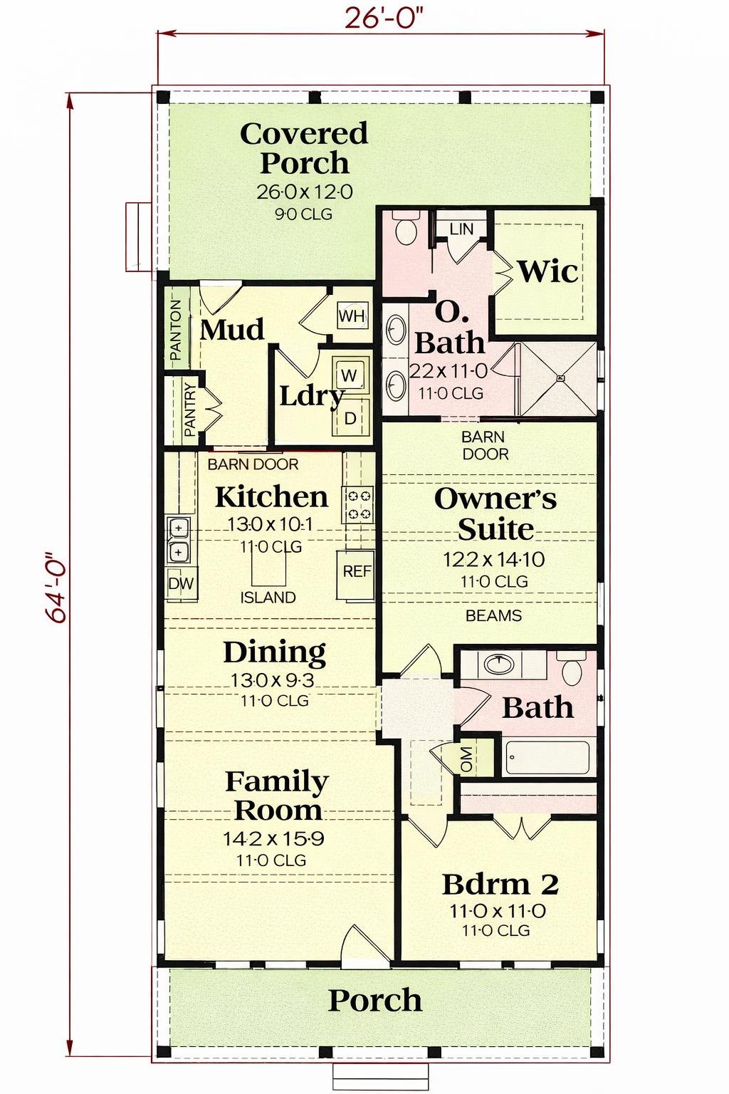 The exterior presents a quintessential modern farmhouse look with clean lines, balanced proportions, and simple, elegant architectural features. 1 Measuring about 26′ wide × 64′ deep, the façade feels cozy yet purposeful, making it ideal for a modest lot or a scenic rural setting. 2 A covered front porch spans much of the home’s width, offering welcoming curb appeal and a relaxed outdoor space you’ll enjoy year-round. 3