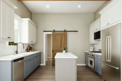 The kitchen strikes a balance between efficiency and social design. 10 With a practical layout that maximizes counter space and an intuitive work triangle, meal prep is smooth and streamlined. 11 A central island further enhances functionality — offering extra prep room, casual seating, and a natural gathering spot during family meals or gatherings. 12
