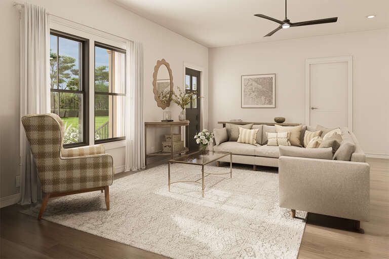 This modern farmhouse design blends cozy scale with open, welcoming spaces — perfect for everyday living, entertaining, and making lifelong memories. Its thoughtful layout, abundant natural light, and porch-connected outdoor living make it an ideal choice for those who want stylish, comfortable home life without excess square footage. 38