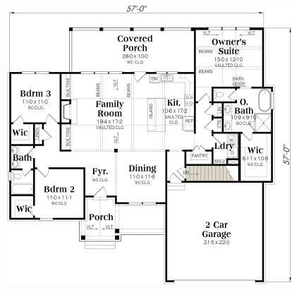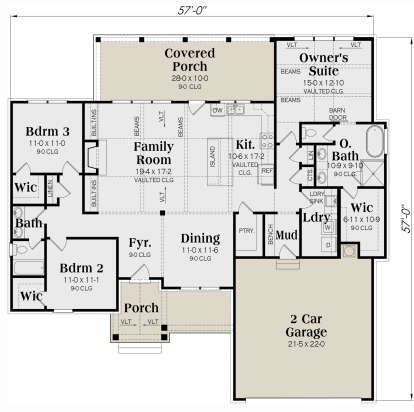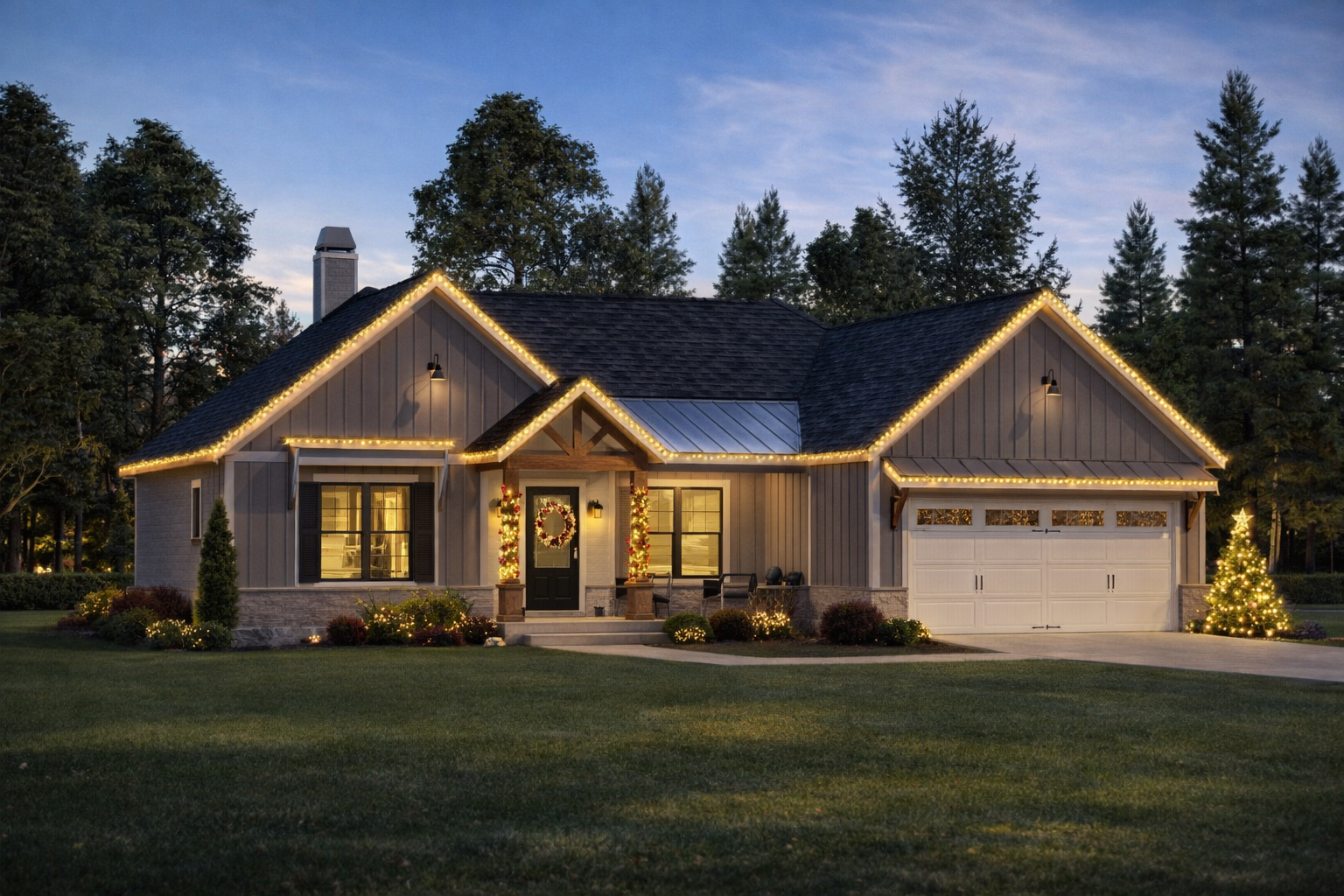 The exterior presents classic modern farmhouse appeal with crisp lines, a welcoming covered front porch, and simple, clean finishes that give the home a warm, approachable presence. 1 A modest footprint makes this plan ideal for smaller lots or scenic settings where outdoor views and landscape matter just as much as indoor space. 2 With dimensions that fit comfortably on many sites, this home feels grounded and purposeful rather than oversized. 3