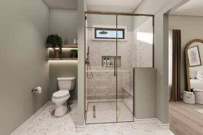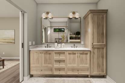 A conveniently located half bath serves guests and daily routines without interrupting the privacy of full baths. 19 A small transitional zone near daily entry points helps keep outdoor gear and shoes organized before entering the main living areas. 20