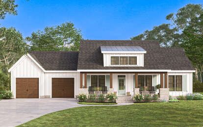 This delightful modern farmhouse plan offers about 1,180 sq ft of living space designed for comfort, efficient everyday living, and timeless style. Featuring 2 bedrooms, 2 full bathrooms, a generous attached 2-car garage (~755 sq ft), and a thoughtful layout with inviting porch areas, it’s ideal for first-time buyers, downsizers, or anyone who loves the relaxed allure of farmhouse living without excess square footage. 0