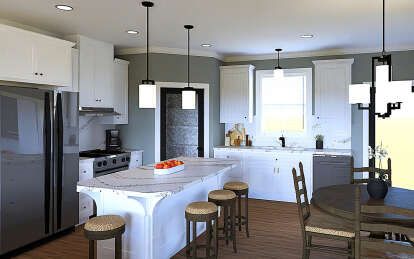 This inviting modern farmhouse plan offers approximately 1,416 sq ft of well-organized living space that feels open, bright, and highly functional. With 3 bedrooms and 2 full bathrooms, all arranged on a single level, this home blends casual everyday living with welcoming style. The design features thoughtful indoor-outdoor flow, practical room placement, and classic farmhouse elements that make it both comfortable and charming. 0